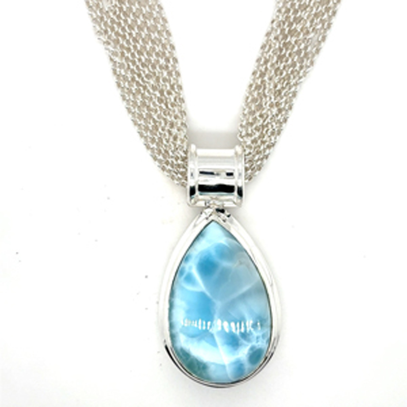 Steinanhänger „Dominicana“ mit wunderschönem Larimar und grosser Oese für dicke Ketten